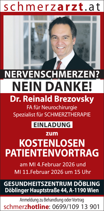 Dr. Brezovsky, Leiter des Gesundheitszentrum Döbling, hält laufend Vorträge zum Thema moderne Schmerztherapie.
